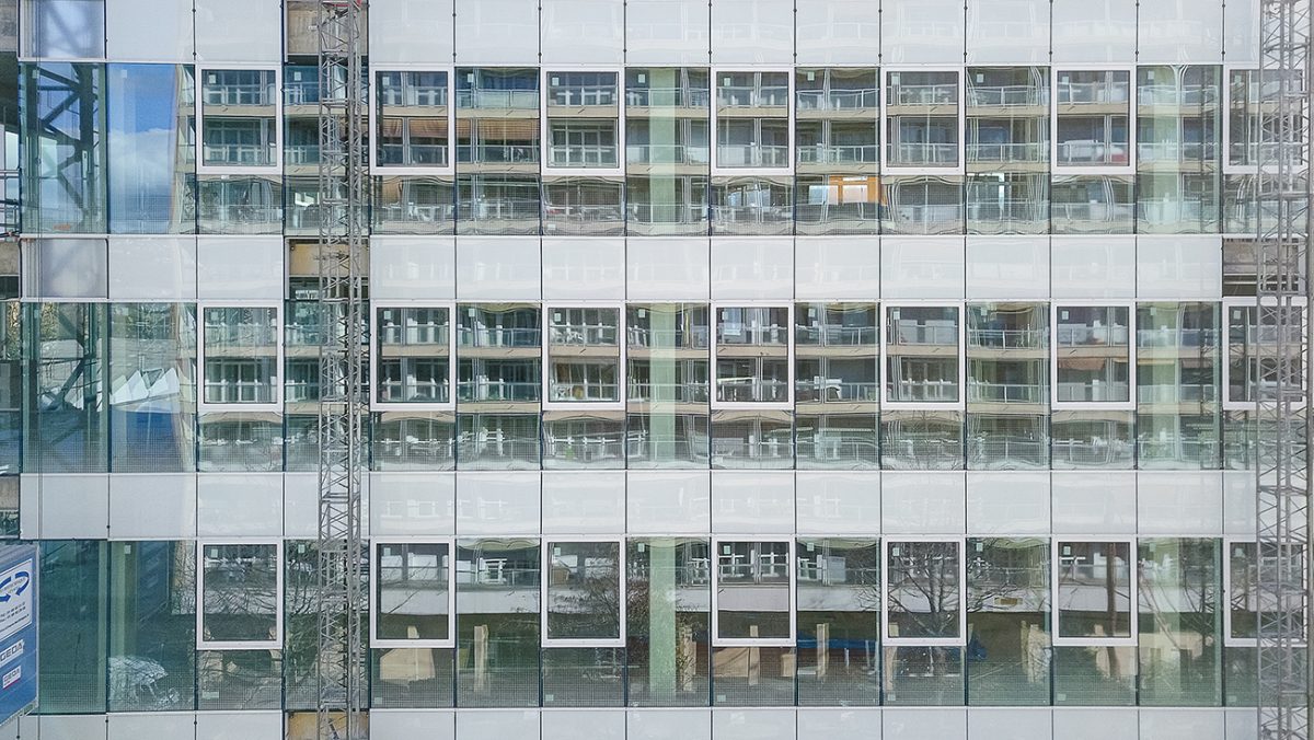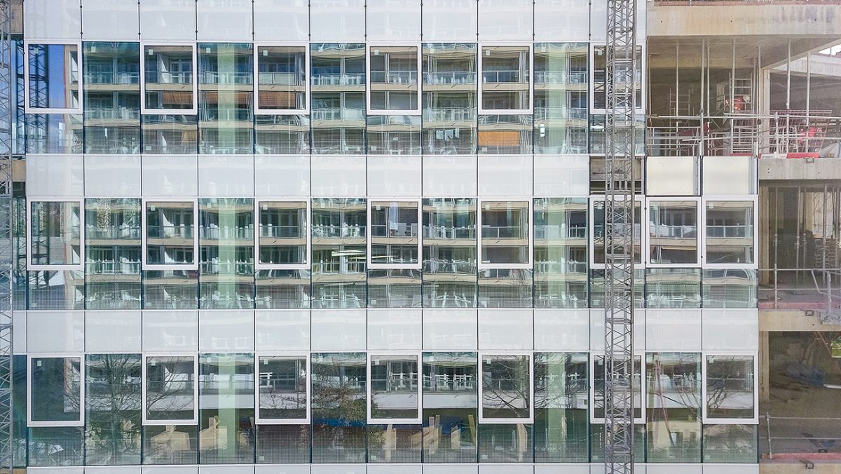 Les travaux de pose des murs rideaux progressent pour Gauthier.