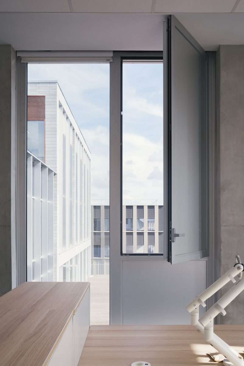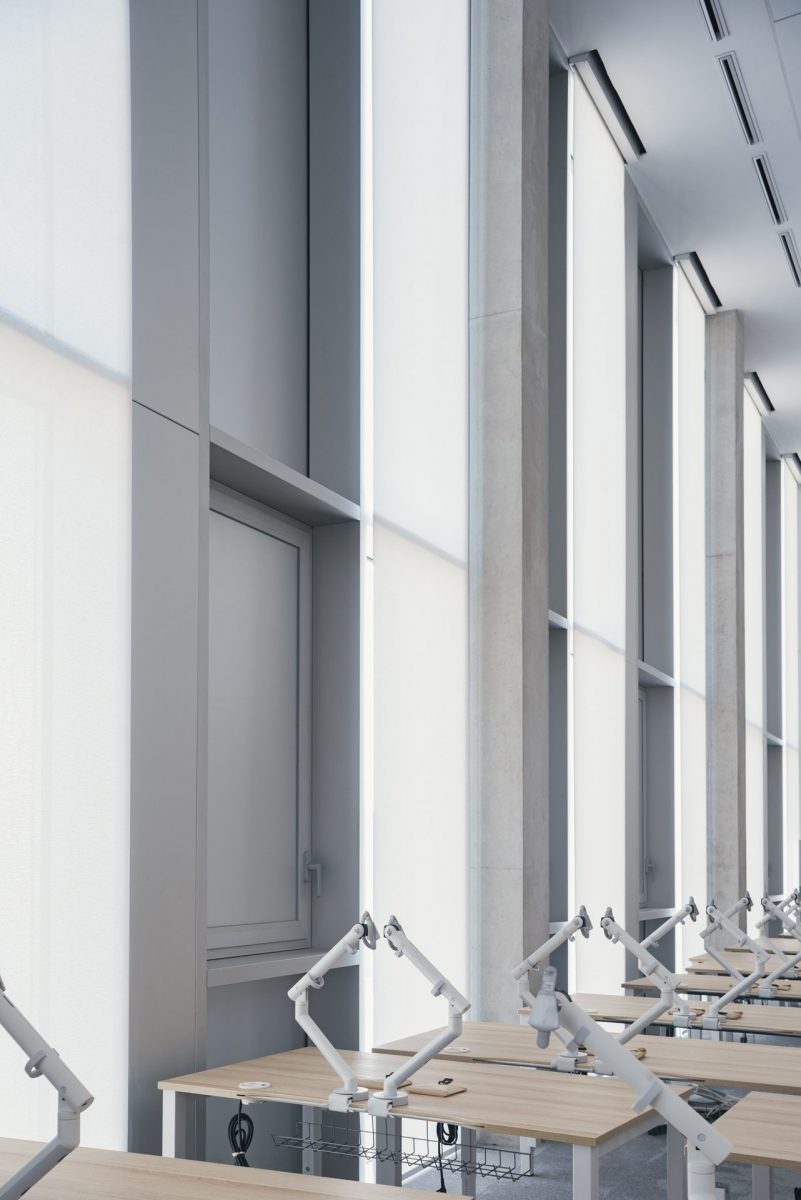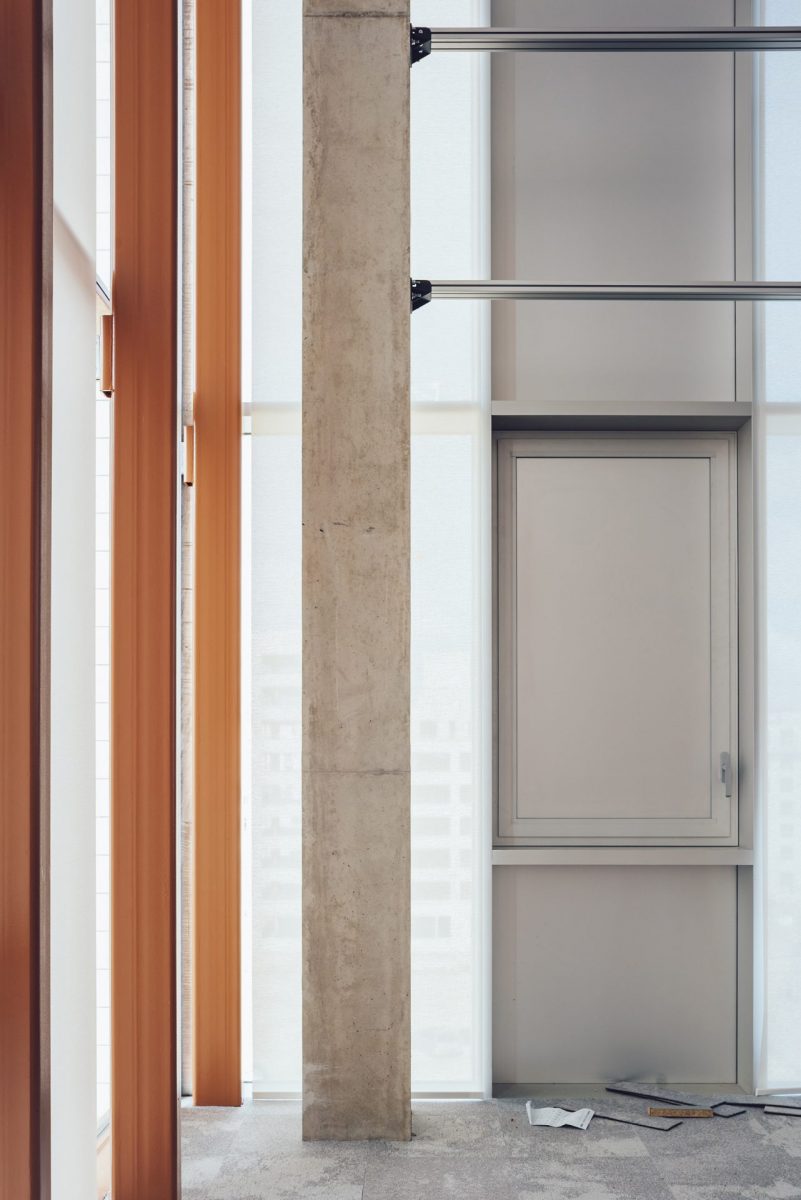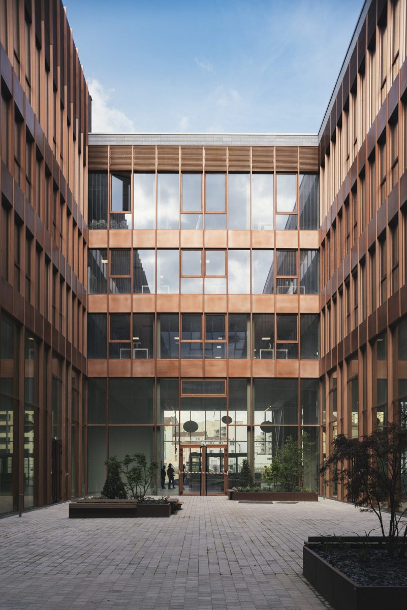 Ce chantier se distingue aussi, à titre d’exemple, par des épines et demi-épines dessinées, moulées et extrudées sur mesure, par 10 000 vantelles mise en place, rien que pour le patio une par une.