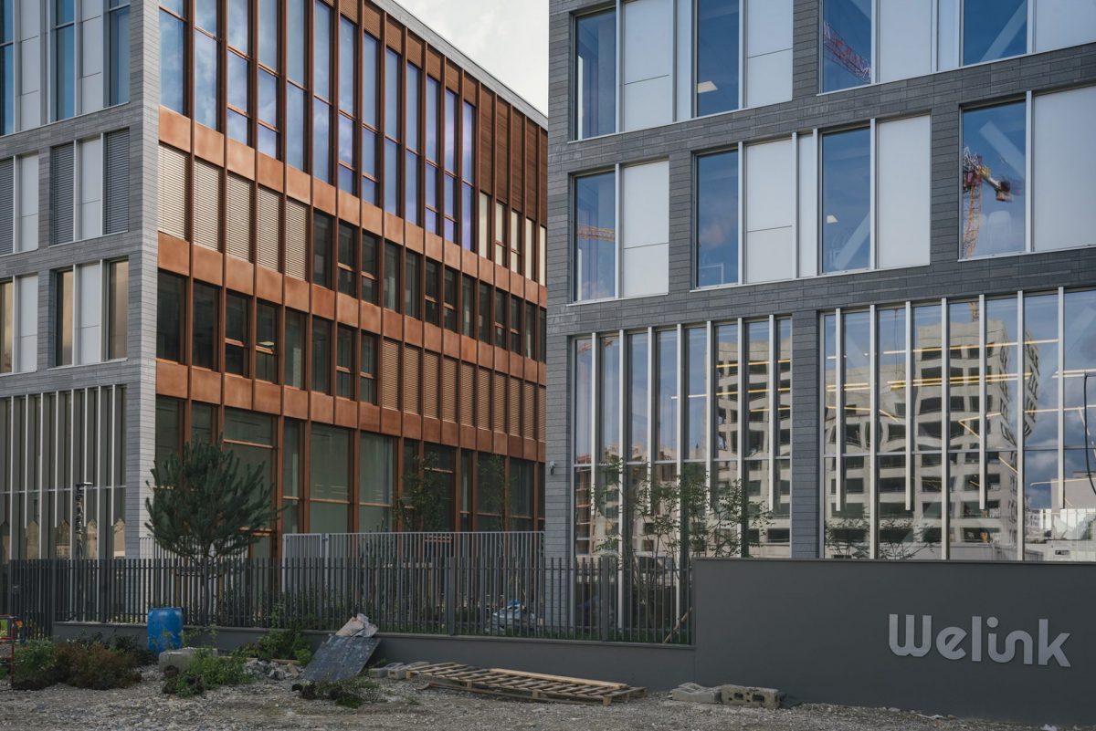 « La construction de WELINK à Lyon (69)à c’est 270 châssis complexes, plus de 50 murs rideaux, 600 cadres, des milliers de pliages, 750 stores, 500 brise-soleil, des vitrages de plus de 800 kg …